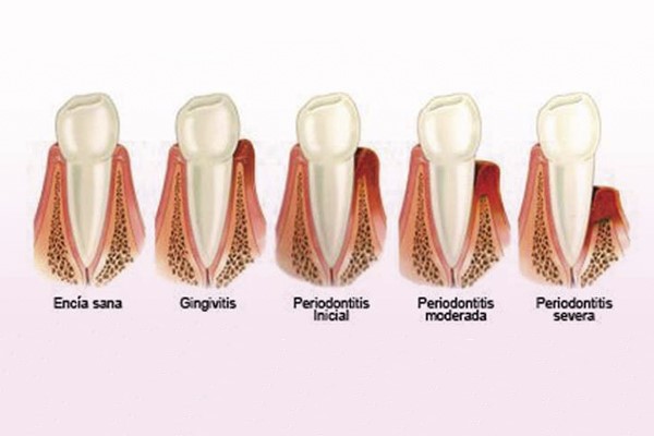 La gingivitis es el estadio más temprano de esta afección. Se caracteriza por producir inflamación y sangrado, sin que llegue a afectar al hueso colindante.